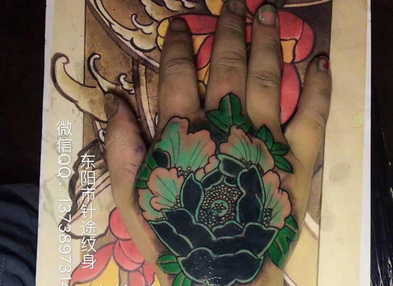 一组15张莲花纹身手