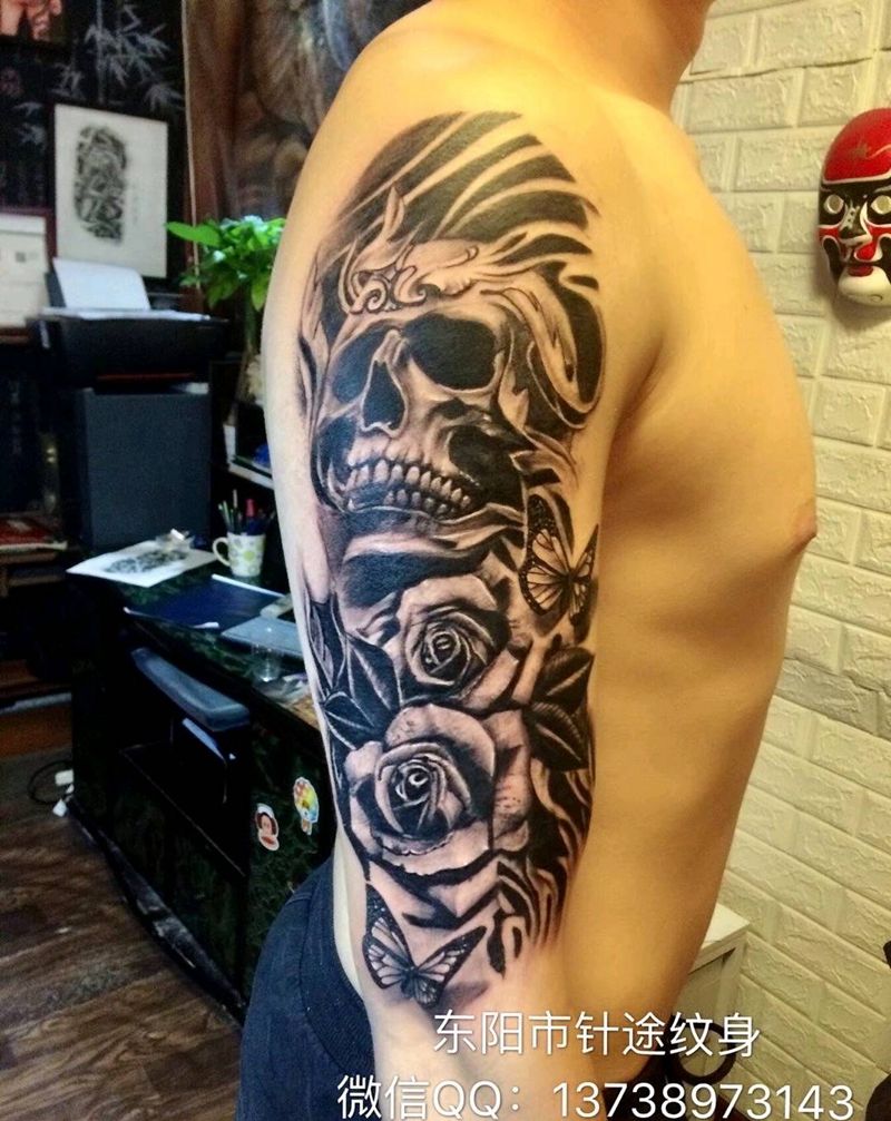 骷髅图纹身图片_手臂欧美写实纹身图案