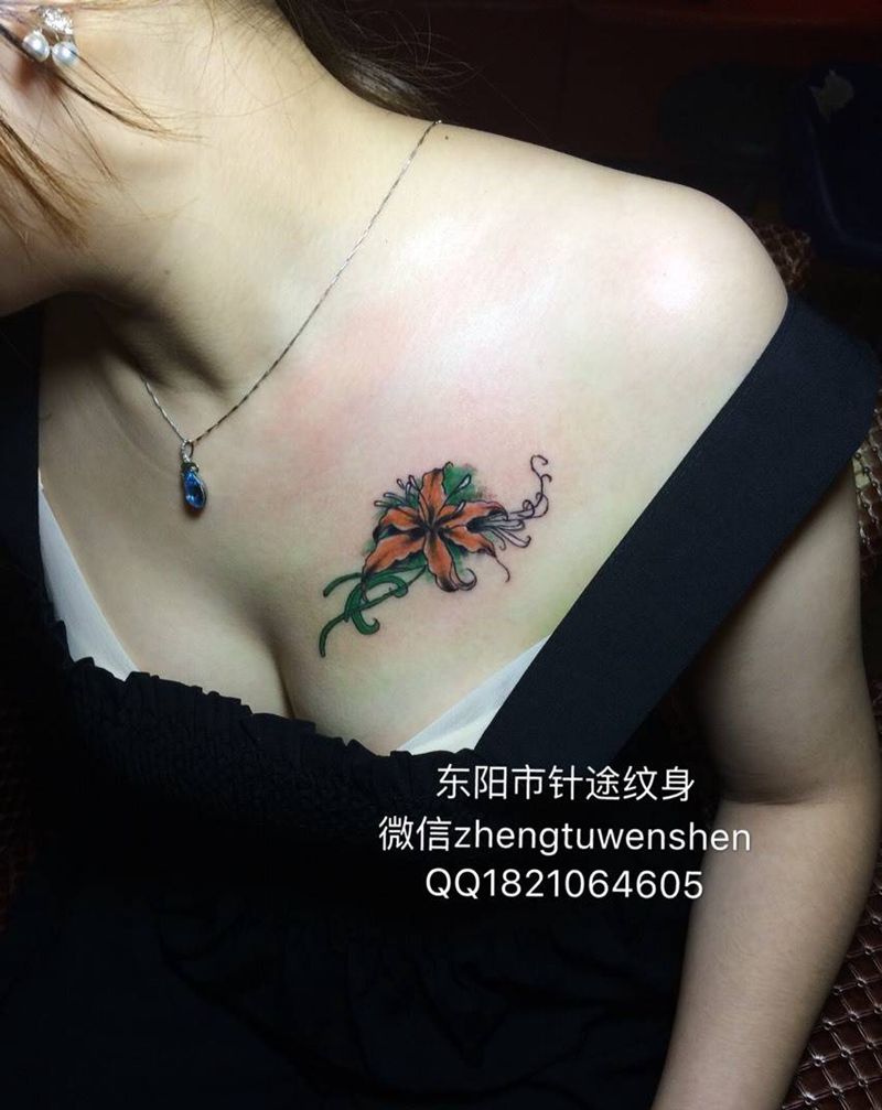• 女性大花胸纹身_43张霸气漂亮的女性大花胸纹身图案作品