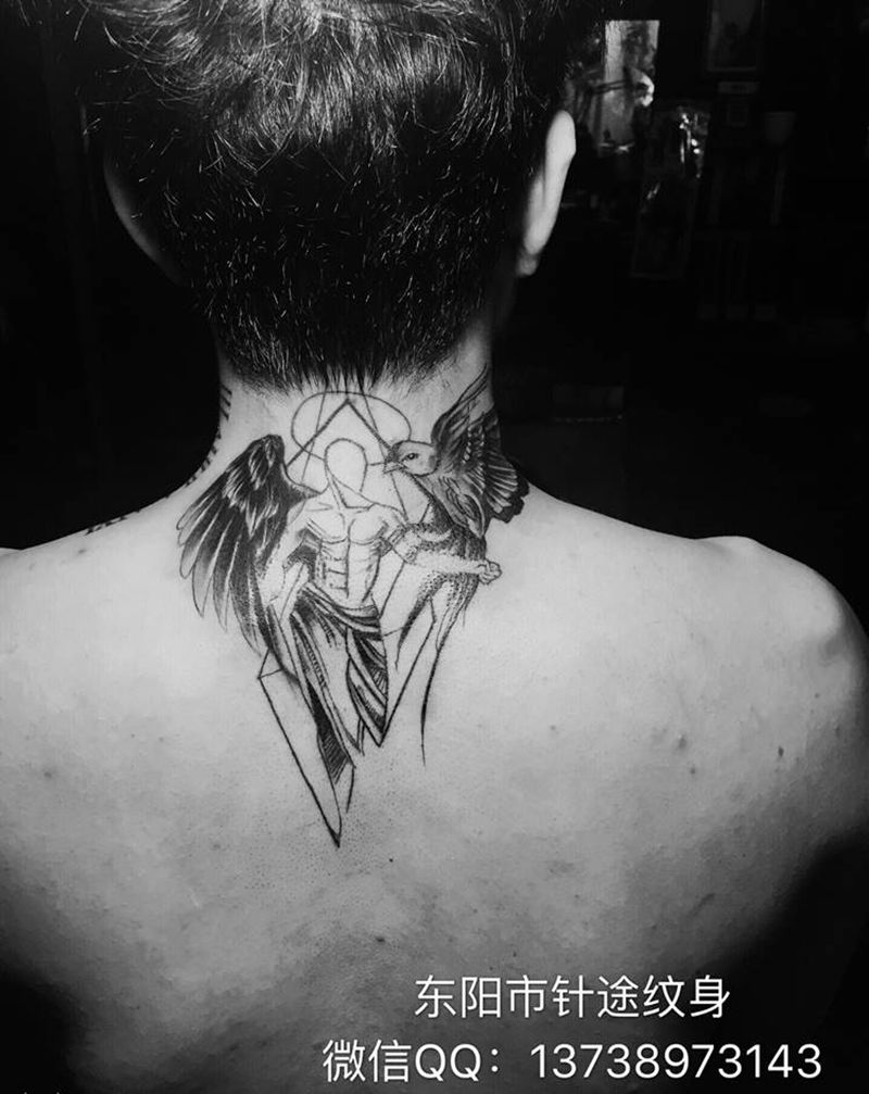 当前位置: 首页 >浙江省金华市纹身店-东阳针途3D纹身纹身图案>天使纹身图片_颈部欧美写实几何纹身图案