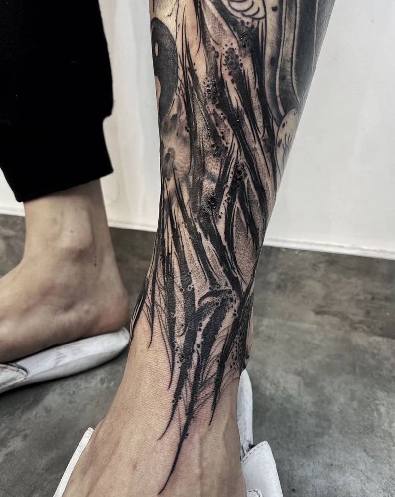 当前位置: 首页 >浙江省杭州市纹身店-三涵刺青社纹身图案>腿部添加字体纹身图片_腿部暗黑字体纹身图案