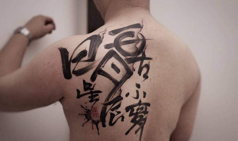 当前位置: 首页 >浙江省台州市纹身店-自述刺青OwnStory纹身图案>日月星辰亘古不变纹身图片_背部水墨书法泼墨中国风纹身图案