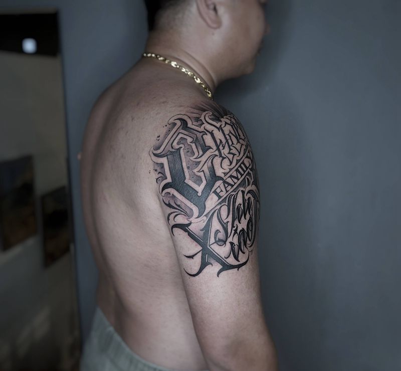 当前位置: 首页 >浙江省台州市纹身店-自述刺青OwnStory纹身图案>花体字纹身图片_手臂花体字纹身图案
