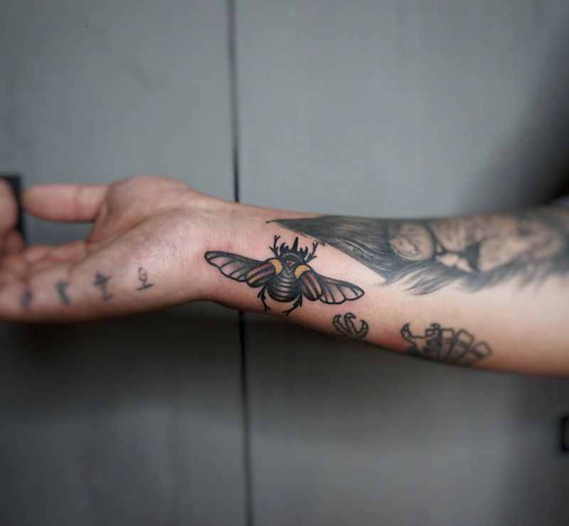 当前位置: 首页 >浙江省台州市纹身店-自述刺青OwnStory纹身图案>old school甲虫纹身图片_手臂手部Old School纹身图案