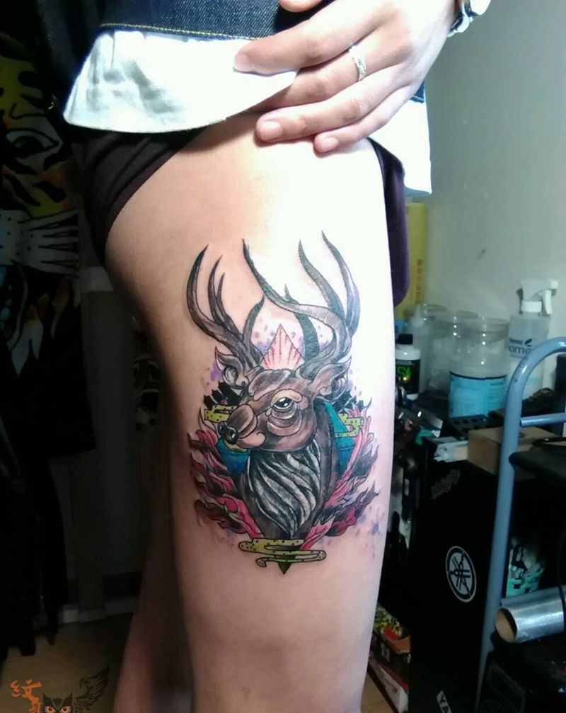 • T网红王老大花腿龙纹身图片_腿部新传统纹身图案