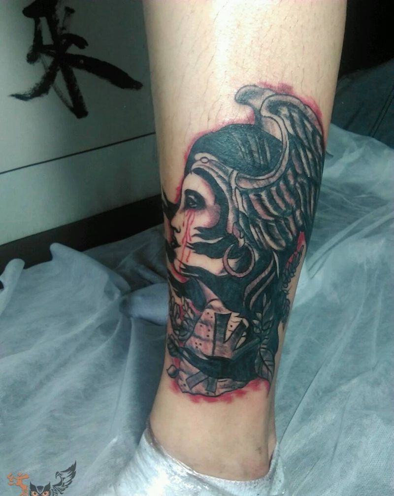 • T包小腿吹火男+阿多福纹身图片_腿部老传统新传统吹火男阿