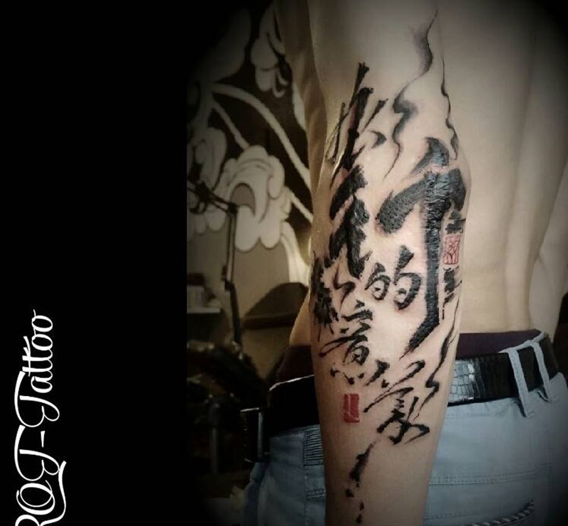 旅行的意义纹身图片_手臂传统国画字符水墨成品手稿纹身图案