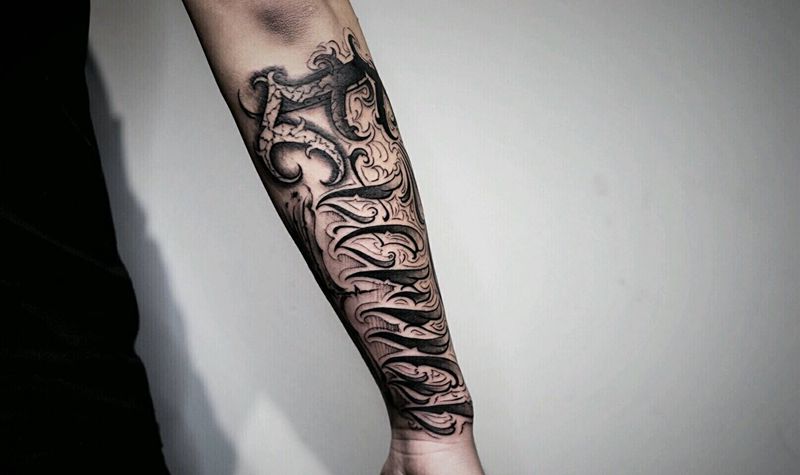 Eternal纹身图片_手臂手部欧美字符原创花体字奇卡诺花成品纹身图案