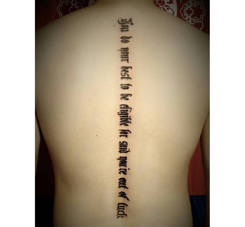 当前位置: 首页 >浙江省台州市纹身店-自述刺青OwnStory纹身图案>脊柱纹身图片_背部字符成品纹身图案