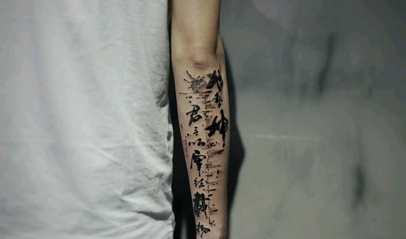 当前位置: 首页 >浙江省台州市纹身店-自述刺青OwnStory纹身图案>天_地纹身图片_手臂传统国画字符原创书法泼墨成品纹身图案
