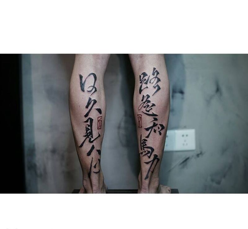 当前位置: 首页 >浙江省台州市纹身店-自述刺青OwnStory纹身图案>书法纹身图片_腿部传统国画字符原创水墨书法泼墨成品纹身图案