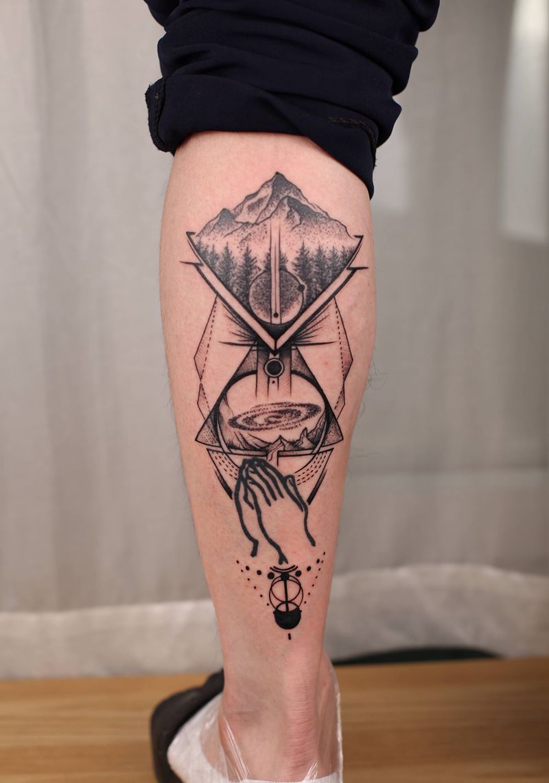 当前位置: 首页 >浙江省台州市纹身店-自述刺青OwnStory纹身图案>几何纹身图片_腿部图腾点刺纹身图案