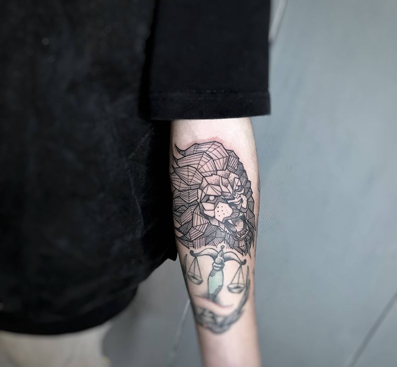 当前位置: 首页 >浙江省台州市纹身店-自述刺青OwnStory纹身图案>狮子纹身图片_手臂几何图腾纹身图案