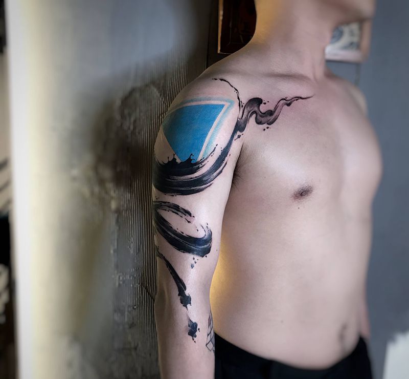 当前位置: 首页 >浙江省台州市纹身店-自述刺青OwnStory纹身图案>泼墨笔触纹身图片_手臂水墨几何泼墨书法笔触纹身图案