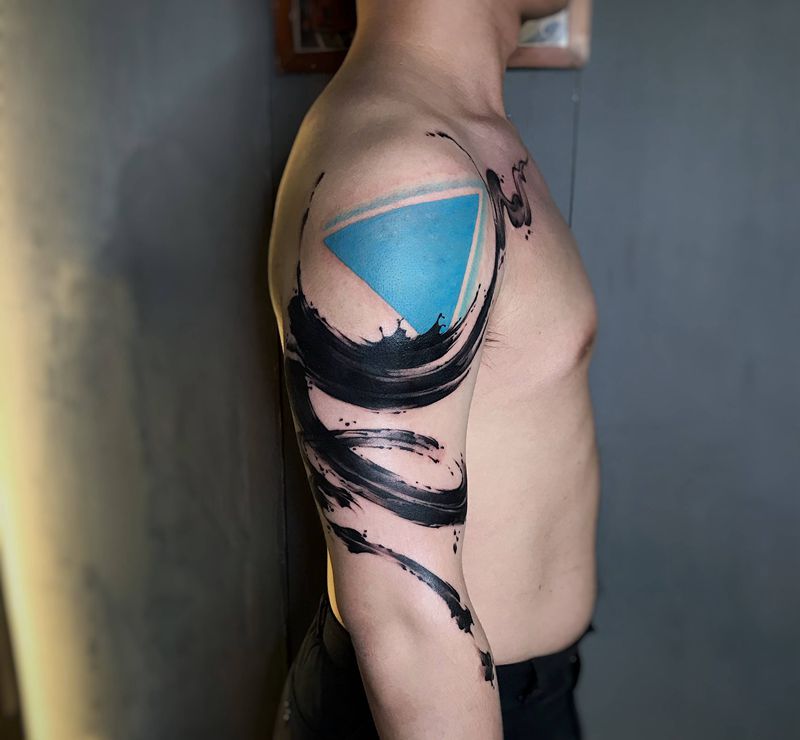 泼墨笔触纹身图片_手臂水墨几何泼墨书法笔触纹身图案