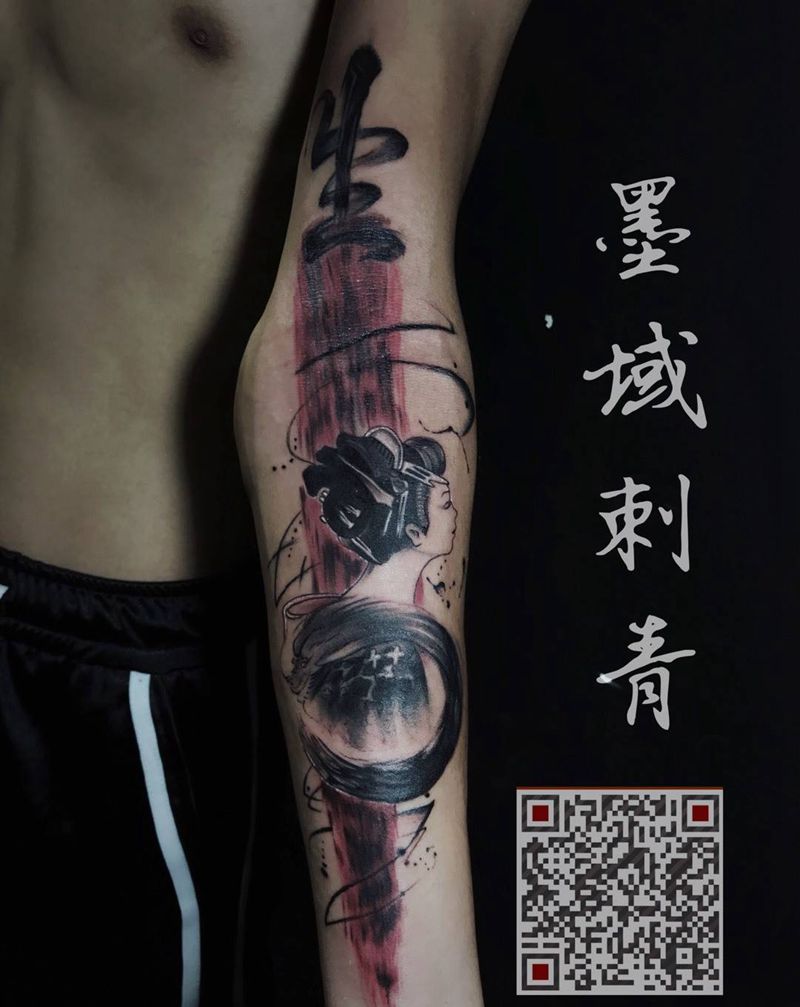 当前位置: 首页 >浙江省舟山市纹身店-墨域纹身工作室纹身图案>艺妓纹身图片_成品手臂写实传统人物鬼神纹身图案