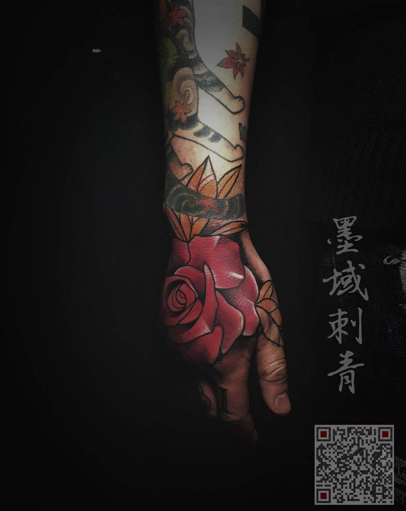 当前位置: 首页 >浙江省舟山市纹身店-墨域纹身工作室纹身图案>玫瑰纹身图片_成品手部传统欧美植物纹身图案