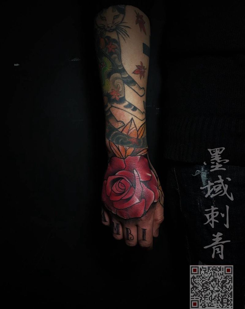 当前位置: 首页 >浙江省舟山市纹身店-墨域纹身工作室纹身图案>玫瑰纹身图片_成品手部传统欧美植物纹身图案
