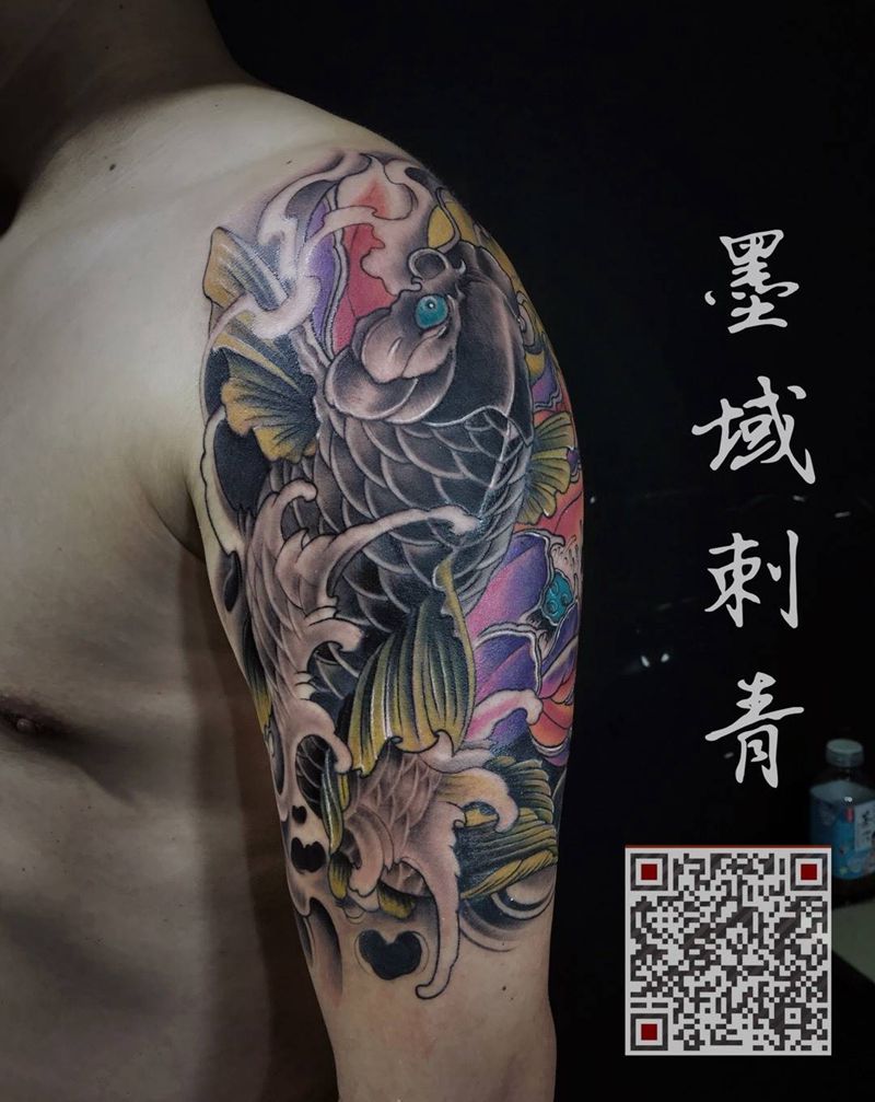 当前位置: 首页 >浙江省舟山市纹身店-墨域纹身工作室纹身图案>鲤鱼纹身图片_成品手臂写实传统动物纹身图案