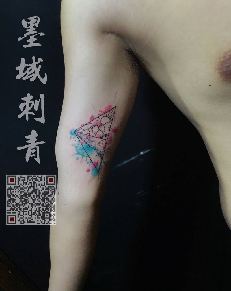 当前位置: 首页 >浙江省舟山市纹身店-墨域纹身工作室纹身图案>白天和黑夜纹身图片_几何原创成品清新手臂纹身图案