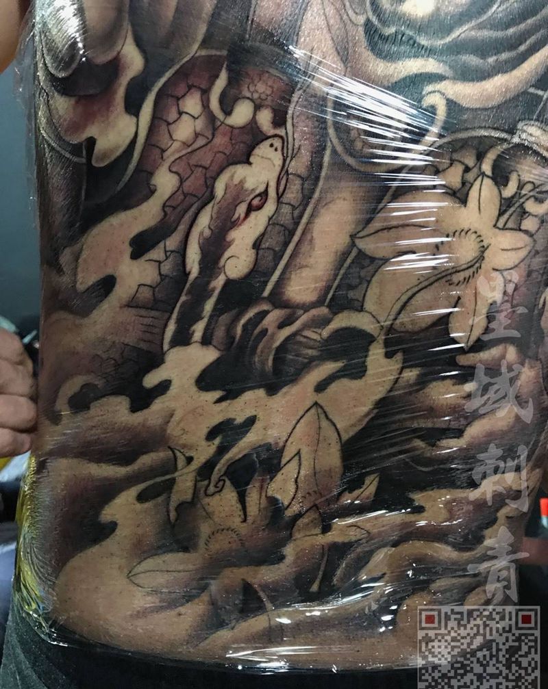 • 黑灰满背纹身图案