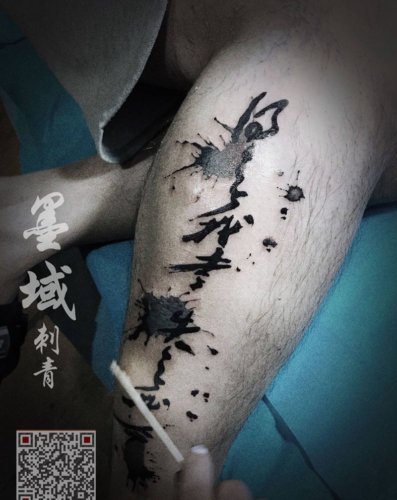 泼墨纹身图片_腿部水墨纹身图案