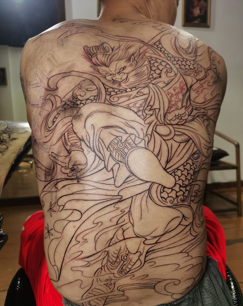 当前位置: 首页 >浙江省舟山市纹身店-墨域纹身工作室纹身图案>满背悟空纹身图片_背部新传统纹身图案