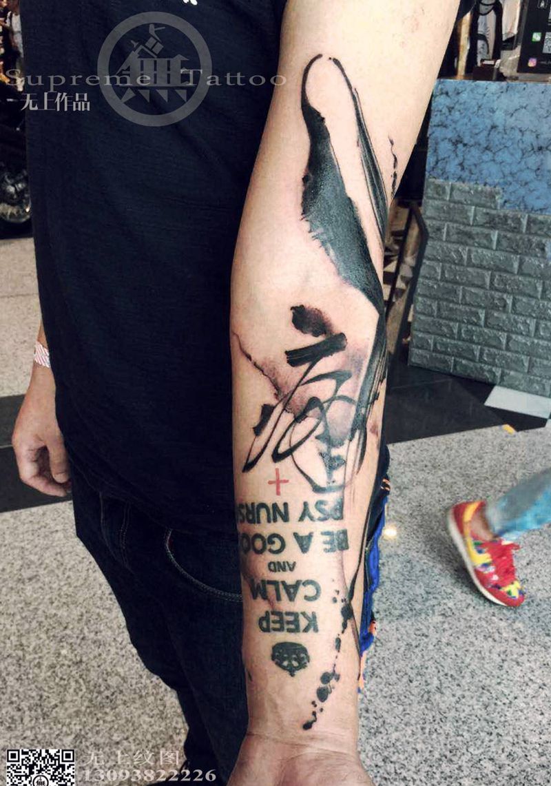 无上香港展会作品《不痛不痒》纹身图片_成品手臂习俗清新字符原创纹身图案