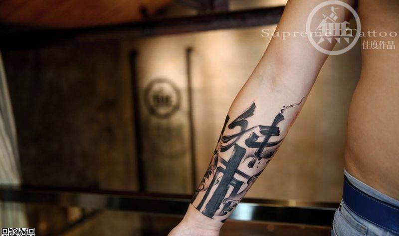 当前位置: 首页 >浙江省台州市纹身店-无上纹图纹身图案>驻店纹身师佳度作品纹身图片_成品手臂习俗清新动物字符原创遮盖纹身图案