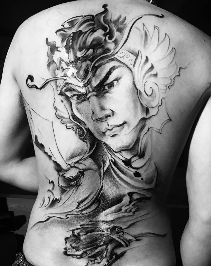 黑灰满背纹身图案