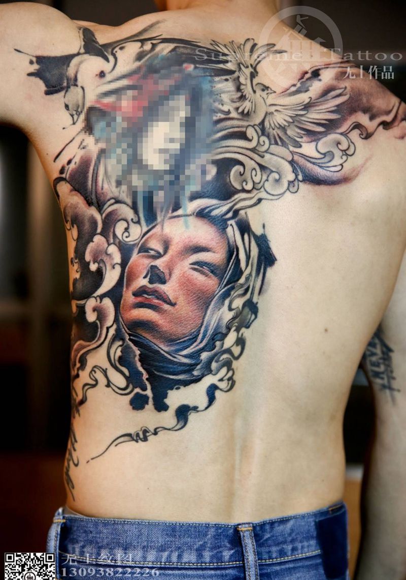 当前位置: 首页 >浙江省台州市纹身店-无上纹图纹身图案>无上添加修改作品纹身图片_成品背部手臂传统肖像写实清新人物动物原创纹身图案