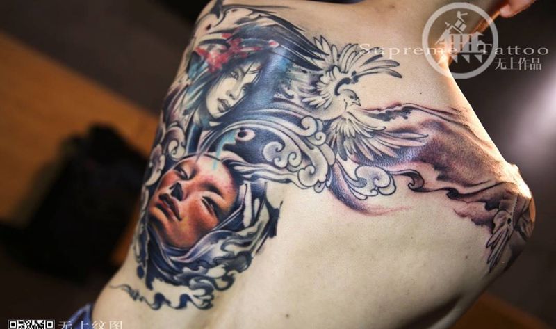 当前位置: 首页 >浙江省台州市纹身店-无上纹图纹身图案>无上添加修改作品纹身图片_成品背部手臂传统肖像写实清新人物动物原创纹身图案