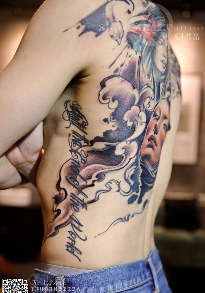 无上添加修改作品纹身图片_成品背部手臂传统肖像写实清新人物动物原创纹身图案