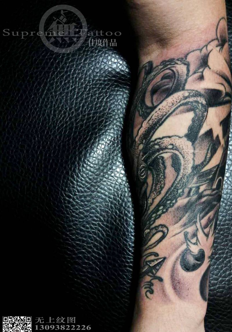 当前位置: 首页 >浙江省台州市纹身店-无上纹图纹身图案>驻店师傅作品纹身图片_成品手臂欧美清新静物原创纹身图案
