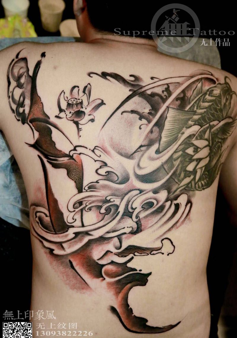 • 黑灰满背纹身图案