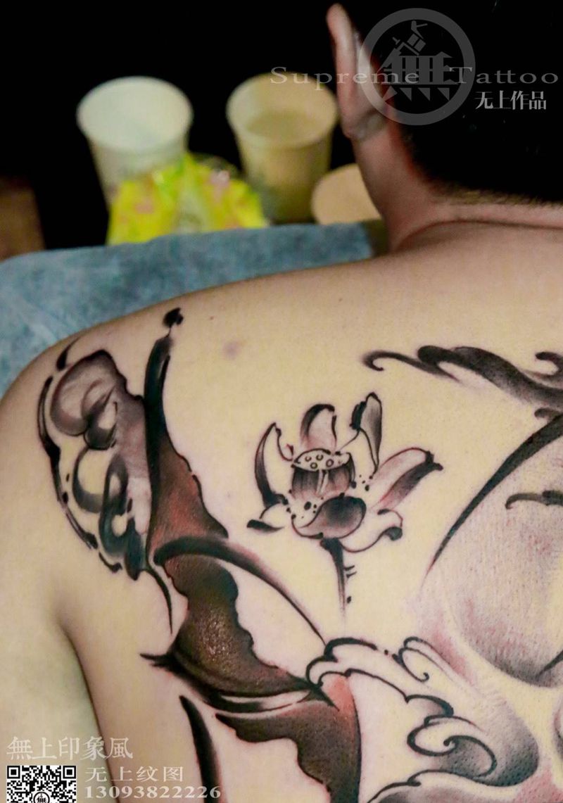 一组15张莲花纹身手