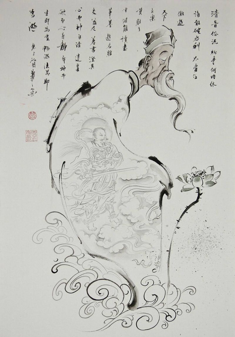 《智者》纹身图片_成品手稿插画传统习俗清新国画人物原创纹身图案
