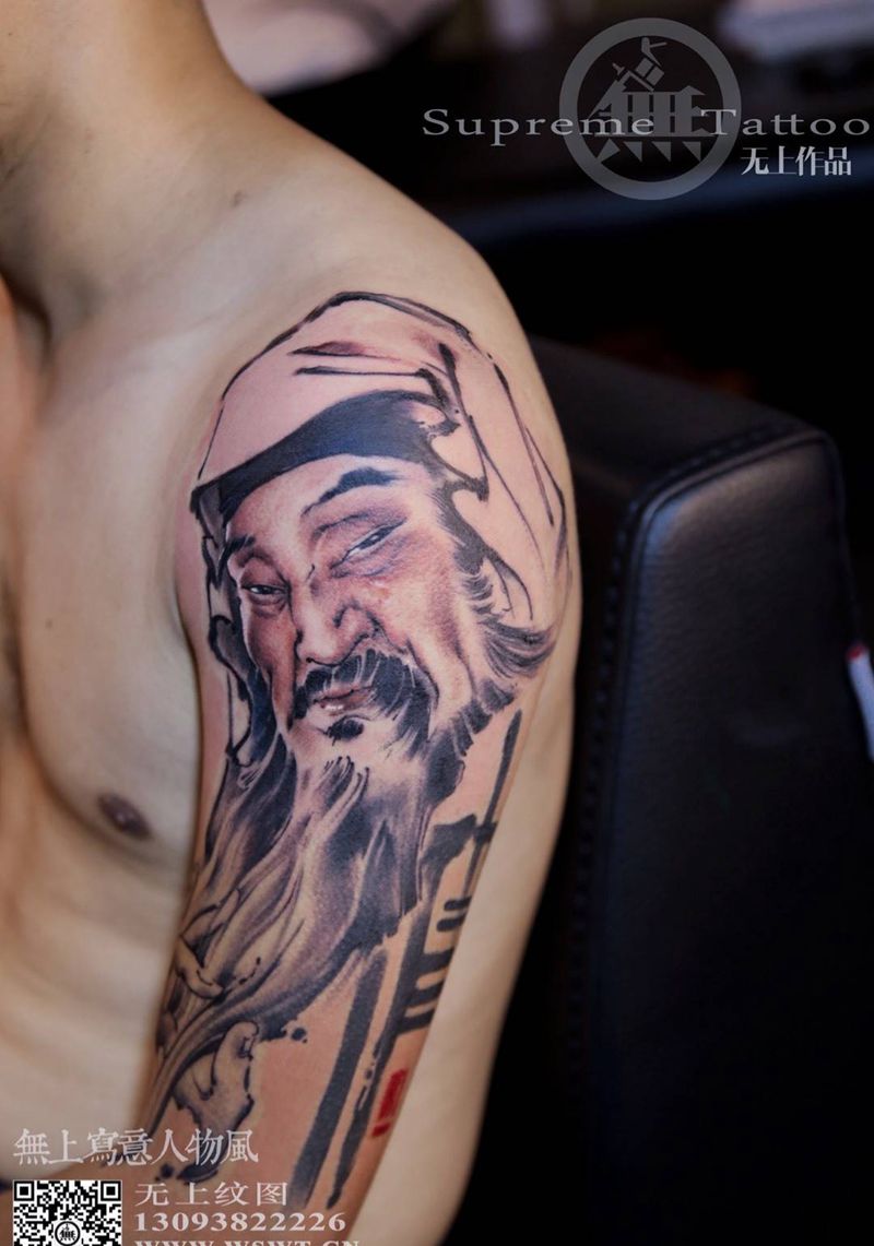当前位置: 首页 >浙江省台州市纹身店-无上纹图纹身图案>修纹身图片_成品手臂传统肖像清新字符人物原创无上纹图生活纹身图案