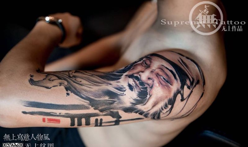 当前位置: 首页 >浙江省台州市纹身店-无上纹图纹身图案>修纹身图片_成品手臂传统肖像清新字符人物原创无上纹图生活纹身图案