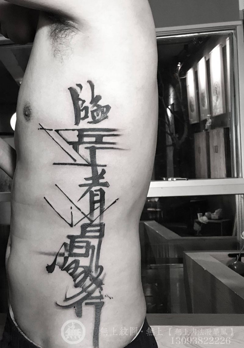 当前位置: 首页 >浙江省台州市纹身店-无上纹图纹身图案>侧腰书法纹身纹身图片_成品腰部传统清新字符原创图腾无上纹图招生纹身图案