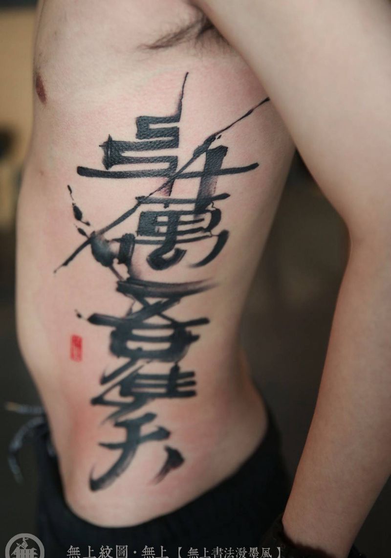 侧腰书法纹身纹身图片_成品腰部传统清新字符原创图腾无上纹图招生纹身图案