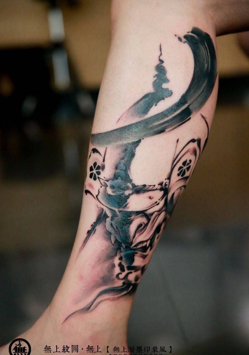 甲胄纹身图片_成品腿部传统肖像原创图腾无上纹图招生静物纹身图案