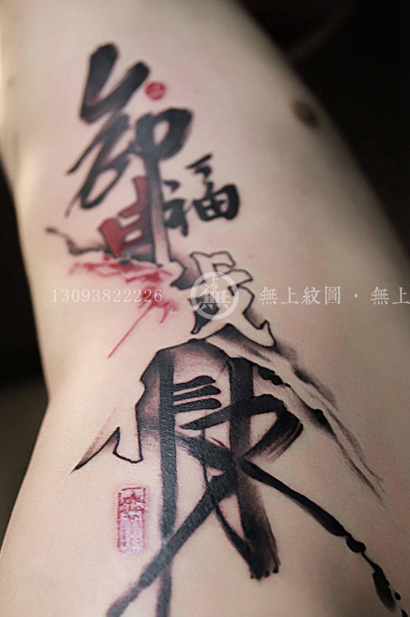 命由我作 福自己来纹身图片_成品腰部清新传统字符原创图腾无上纹图招生手稿纹身图案