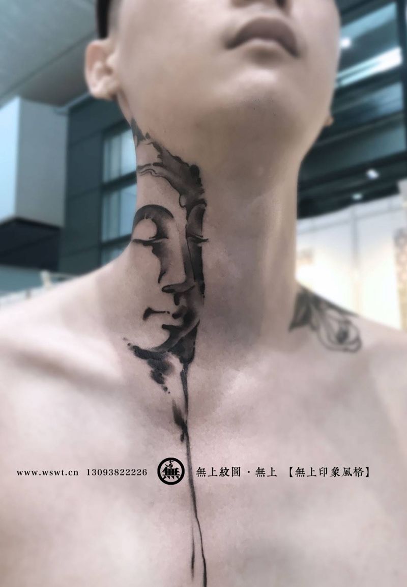 香港展会作品纹身图片_成品颈部原创宗教无上纹图展会纹身图案