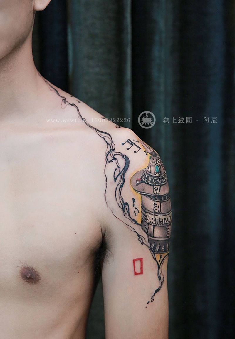 转经筒纹身图片_成品手臂清新传统静物原创无上纹图招生纹身图案