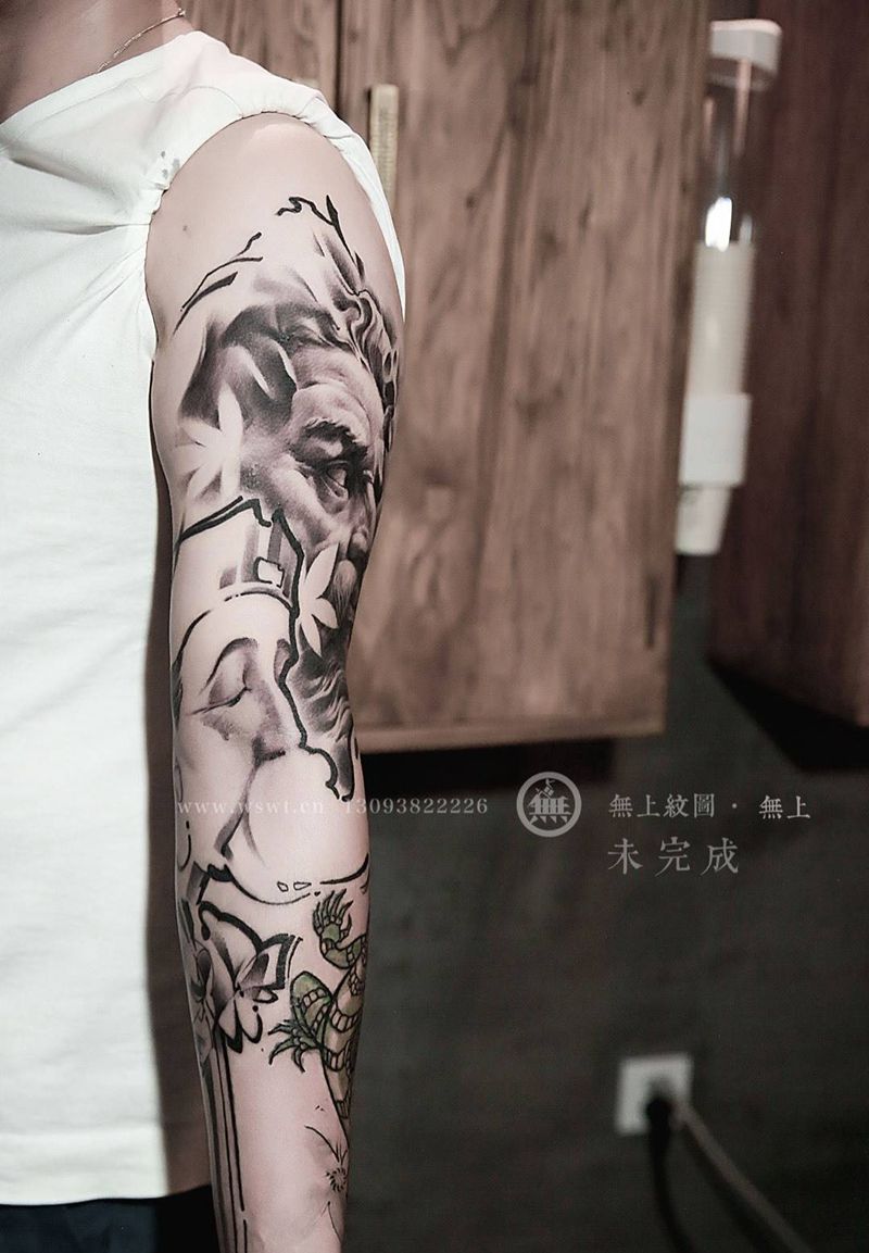 欧美雕塑纹身纹身图片_手臂欧美写实原创图腾无上纹图生活人物纹身图案