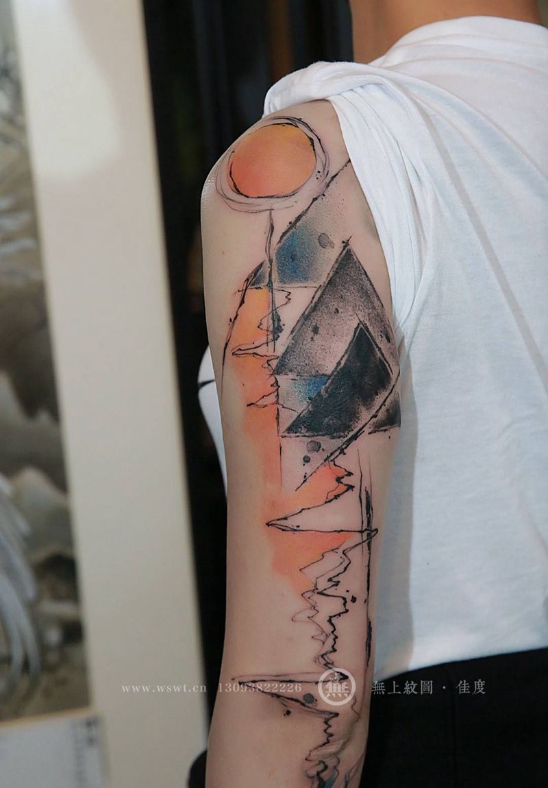 花臂纹身图片_成品手臂欧美清新几何原创无上纹图招生纹身图案