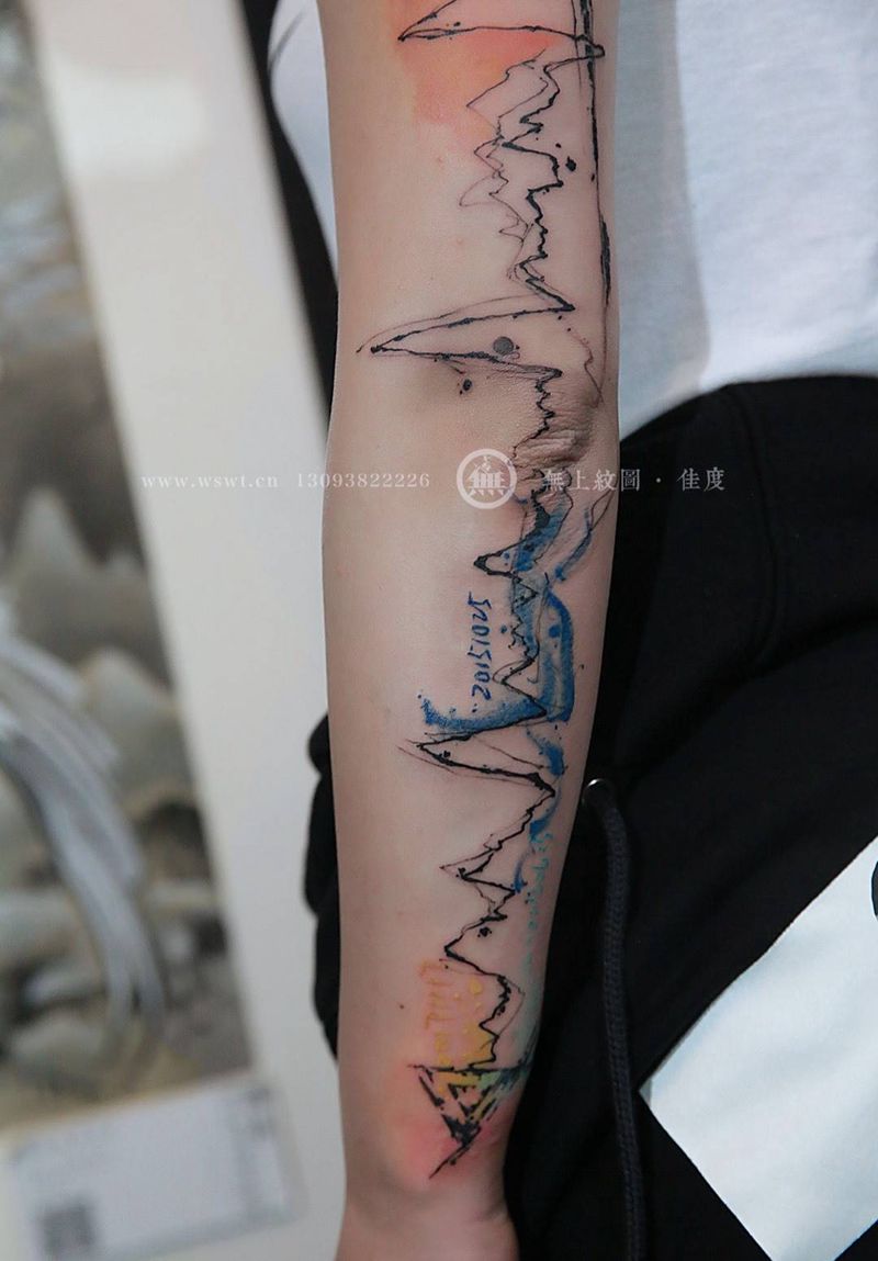 花臂纹身图片_成品手臂欧美清新几何原创无上纹图招生纹身图案