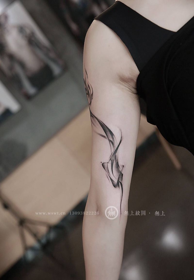 烟雾纹身图片_成品手臂清新原创图腾无上纹图招生纹身图案