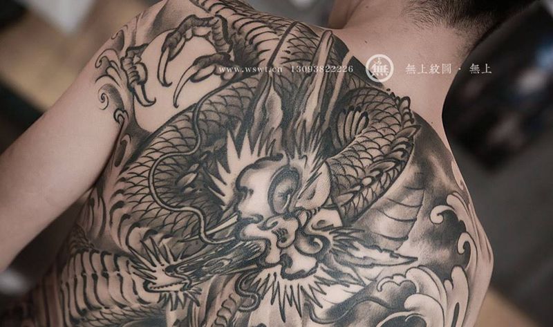 满背龙纹身图片_成品背部传统鬼神原创无上纹图招生动物纹身图案